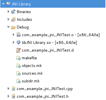 对应的java代码中为System.loadLibrary("JNI_Library");不要lib和后面的.so