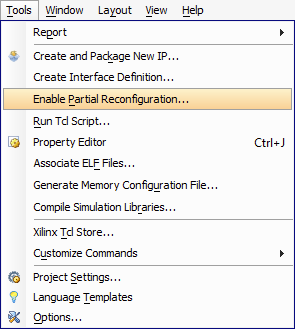 当工程创建好了之后。Tools > Enable Partial Reconfiguration. 一旦被设置了之后,是不能撤销的。
