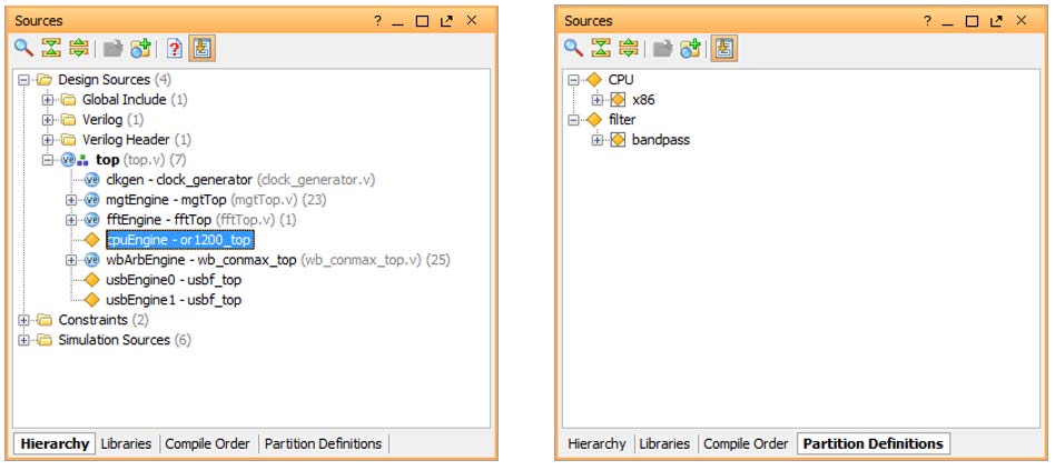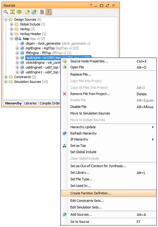 一旦将工程设为PR工程之后,Reconfigurable Partitions可以在RTL source hierarchy中被定义。