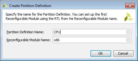 然后设置Partition Definition和第一个RM(Reconfigurable Module)的名字。