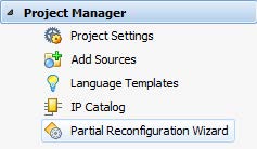 - A link to the Partial Reconfiguration Wizard in the Flow Navigator