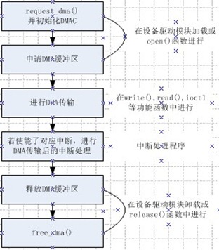 作为本篇的最后,也作为Linux设备驱动核心理论的结束篇,总结一下在Linux设备驱动中DMA相关代码的流程。如下所示: